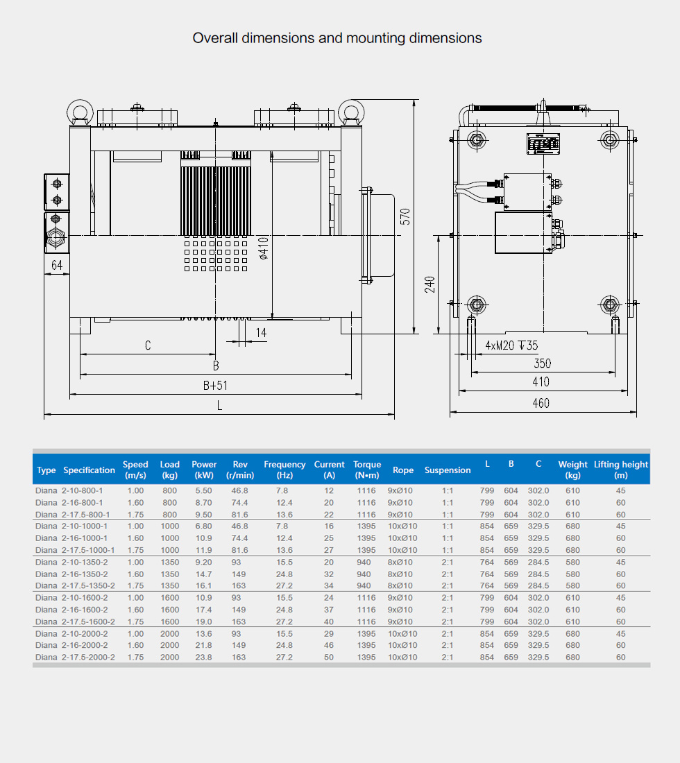 Diana series permanent magnet synchronous gearless traction machine is directly driven by a low-speed, high-torque, 3-phase permanent