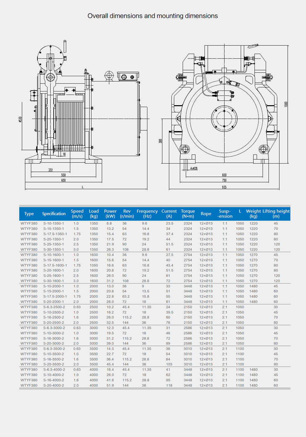 Rated elevator speed: 1.0、1.5、1.75、2、2.5、3.0m/s
