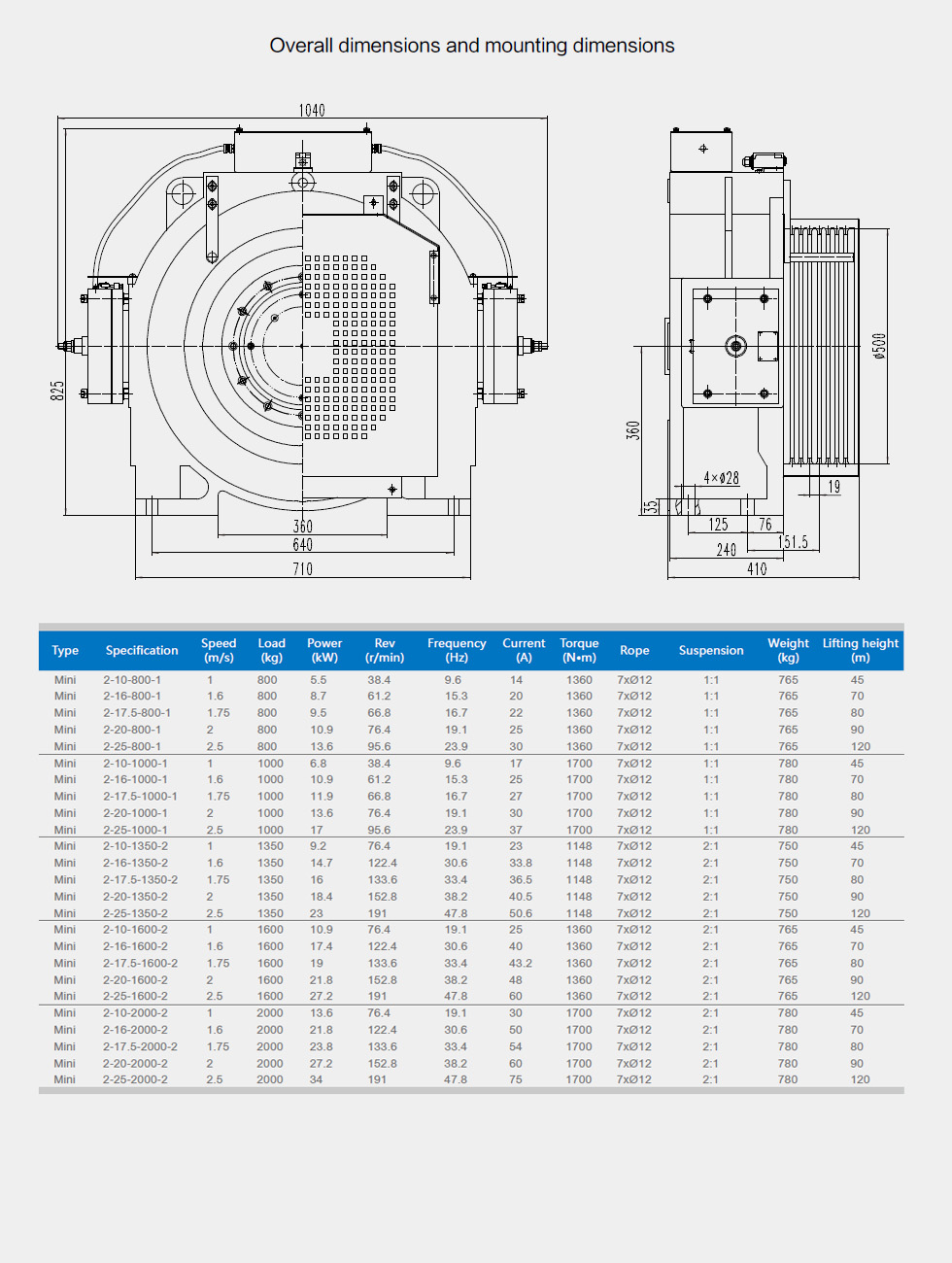 Mini2 is a medium and high speed traction machine with large capacity. It operates in single wrap form, and is applicable to the