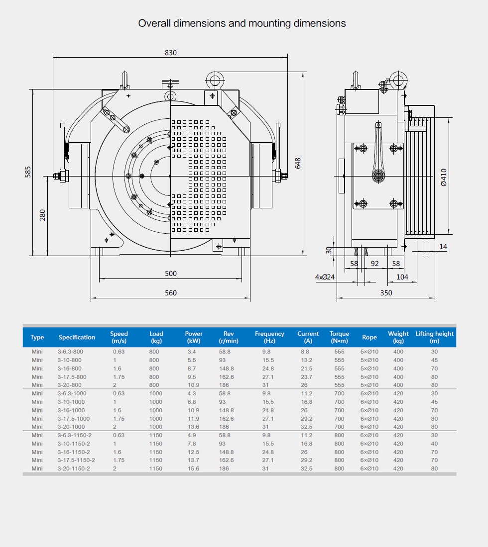 Traction sheave is available in two pitch diameters 410mm and 480mm, and the encoder can be installed in various manners to meet