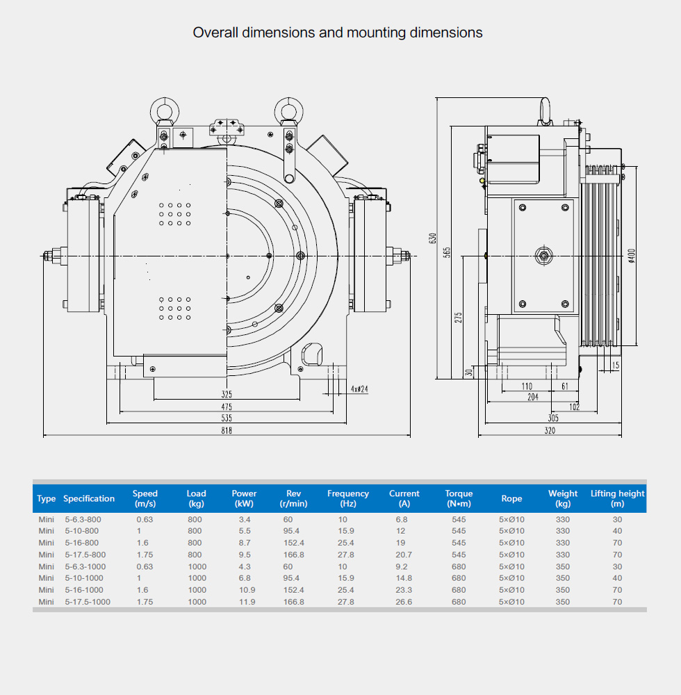 The product is provided with manual brake release device and remote brake release device, and can be used in small machine room